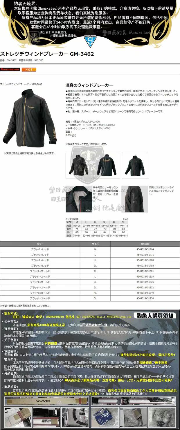 Gamakatsu (Gamakatsu) GM-3462 Холодностойкая теплая рыбацкая одежда [Fengricheng Fishing Sweek]