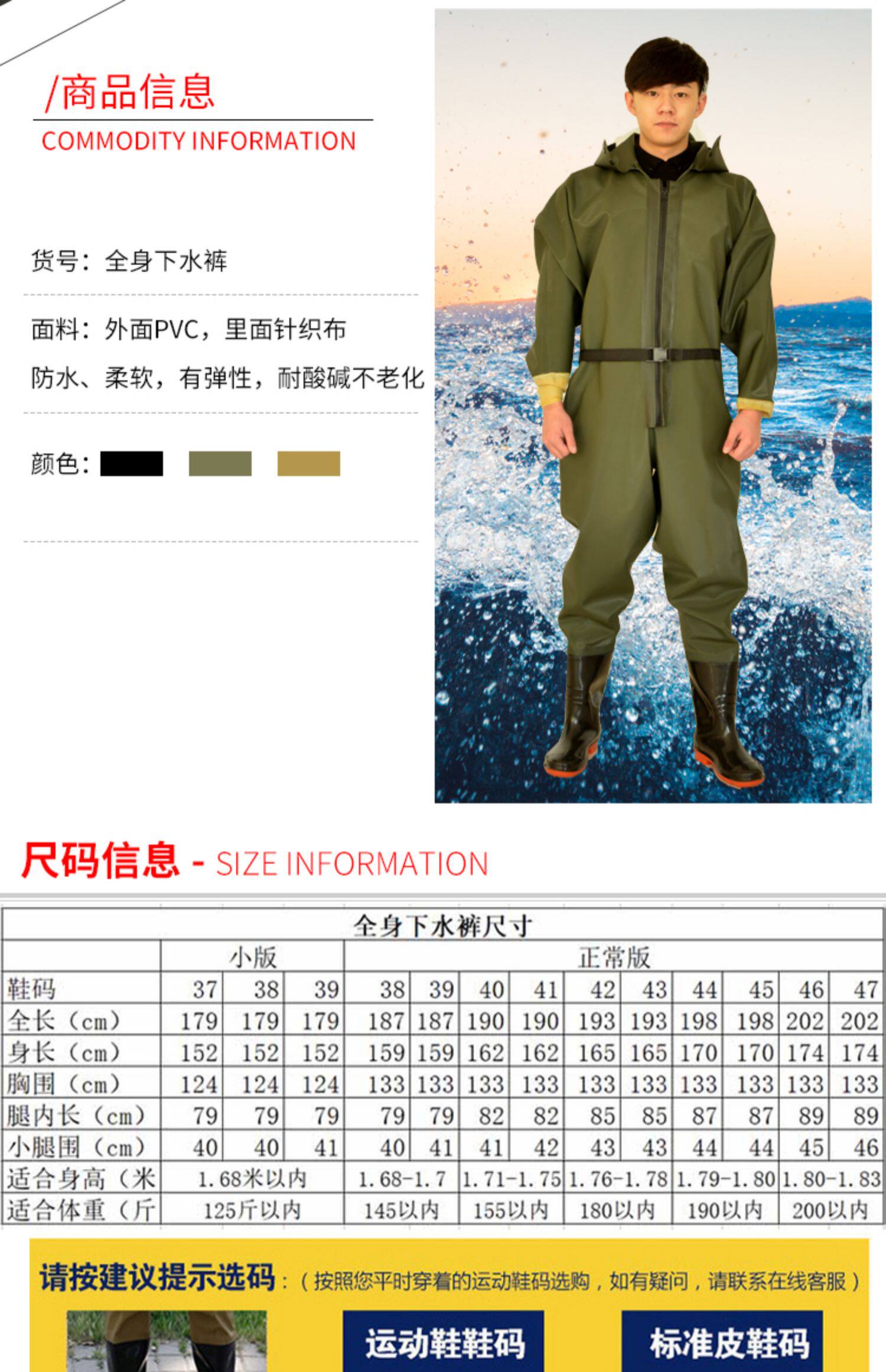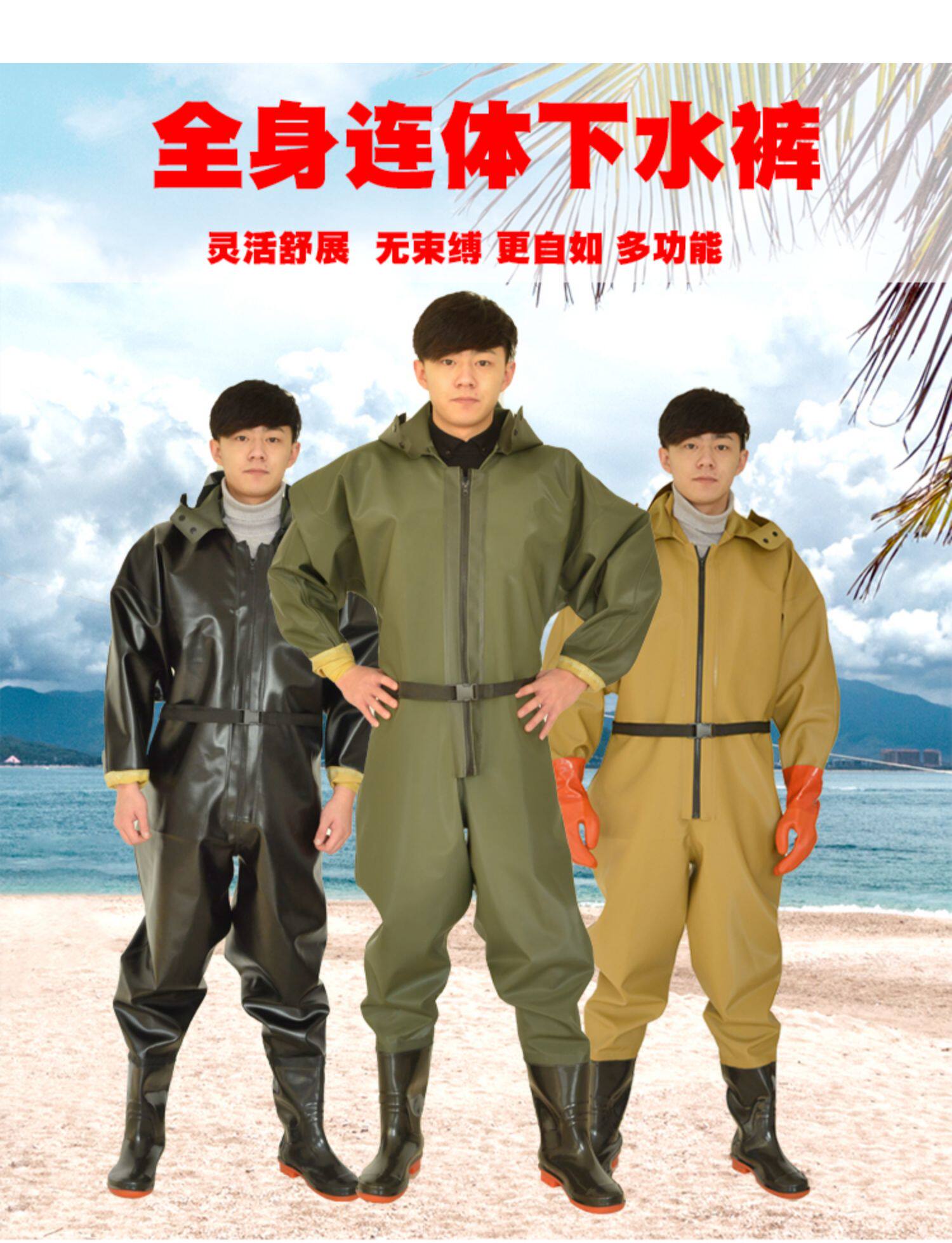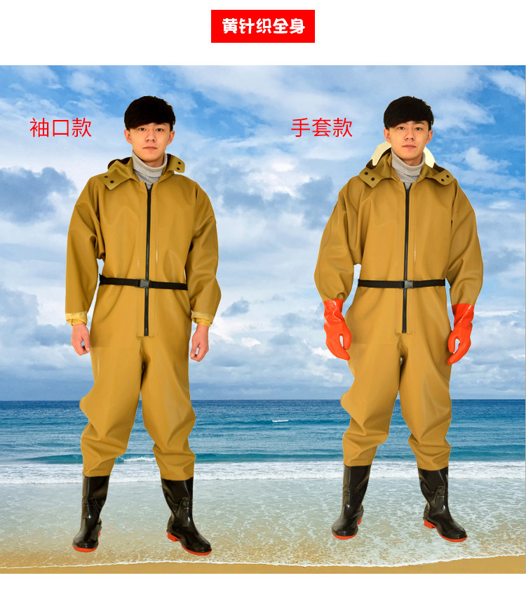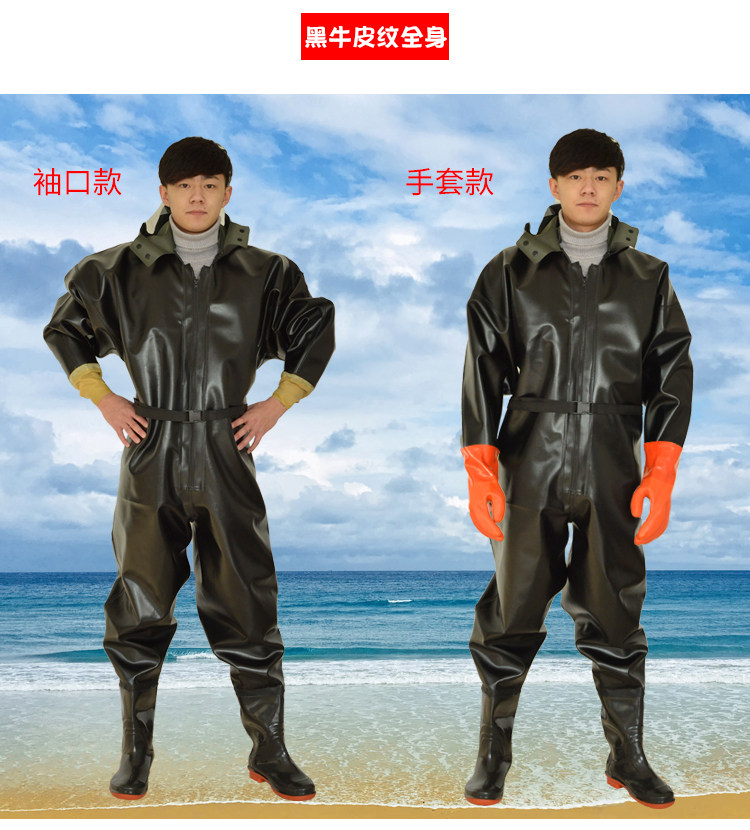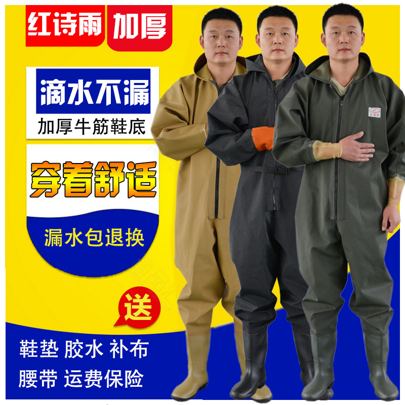 Water pants in the whole body, fishing thickened fishing leather pants, digging 藕 藕 全 Rain pants and rain shoes, whole body waterproof clothing