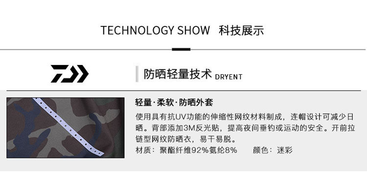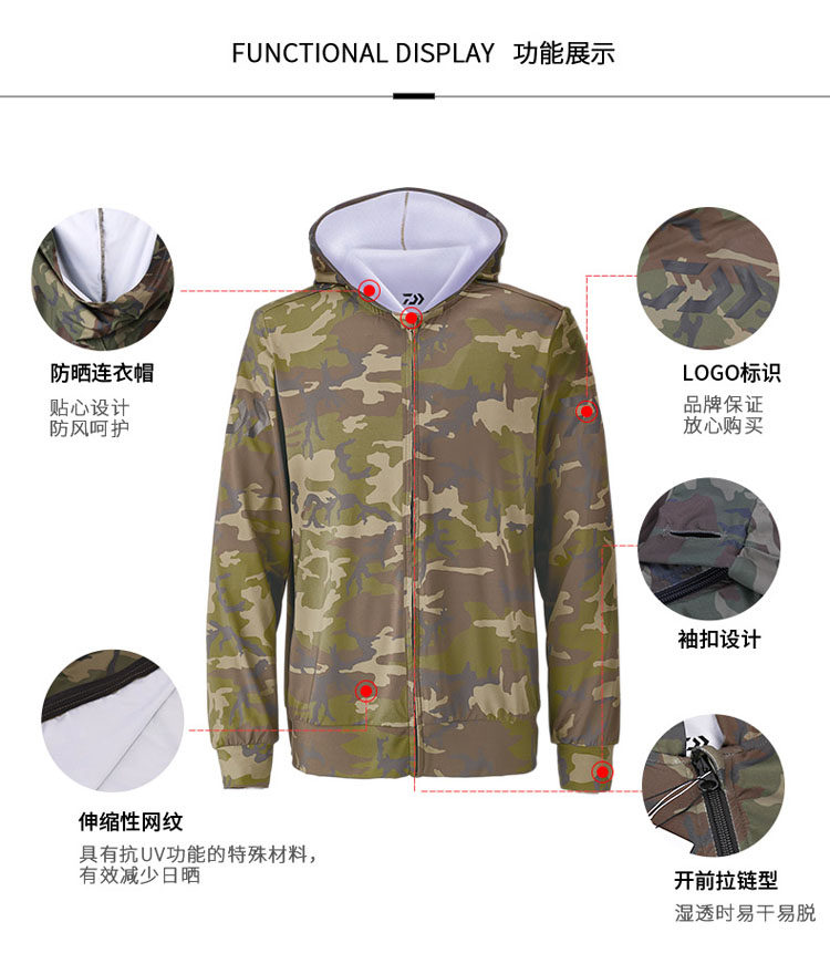 Dayiwa/Daiwa Summer's Men's Camouflage Sunscreen Sunscreen Ice Wire Fishing костюм быстро сушащаяся одежда DCN-5018E