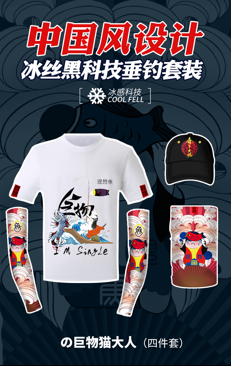 理想鱼 Шелковый летний комплект, дорожная дышащая футболка, защитный рукав, шапка, защита от солнца