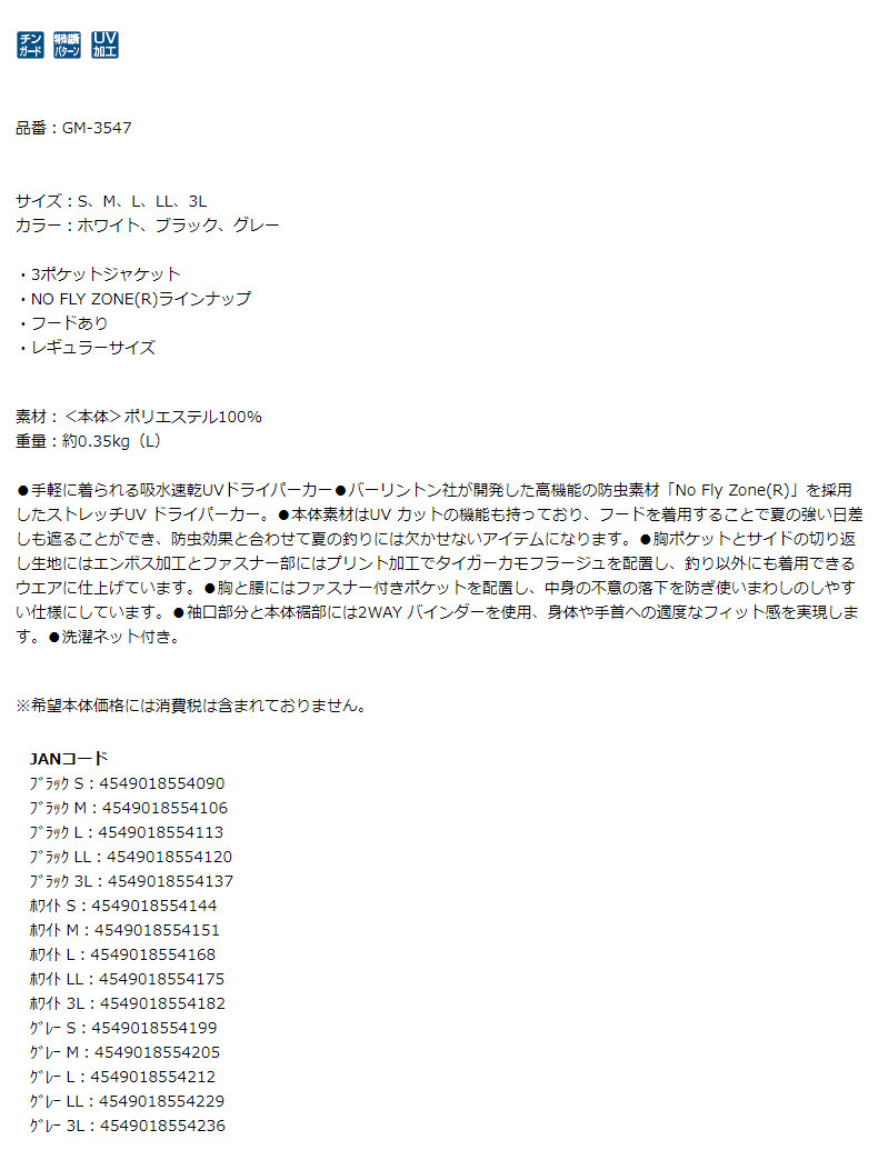 Gamakatsu GM-3547 Краткая сухая на открытом воздухе анти-москитовая эластичная куртка Рыбалка солнцезащитного крема костюма