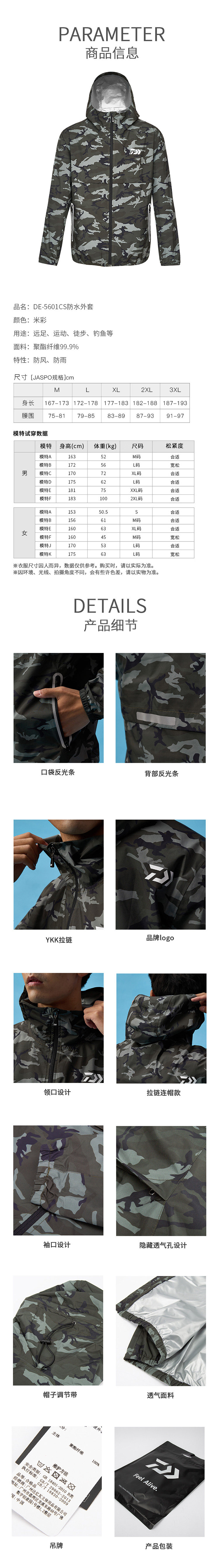 21 Daiwa de5601 Водонепроницаемые поднутые капюшоны.