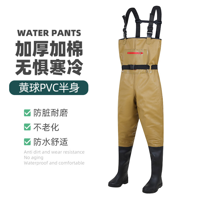 Добавить хлопчатобумажные брюки, водонепроницаемую одежду и дождевые брюки с дождевыми туфлями, утолченный всего тела, хватая брюки для рыбной кожи