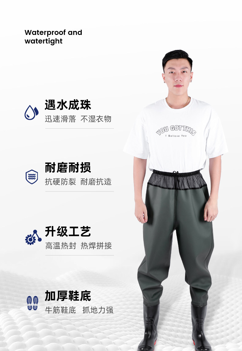 Талия подводные штаны сгущенные водонепроницаемые и дождевые брюки с дождевыми каплями, брюки -вилки, мужская соединительная рыбацкая обувь -супер -светлые