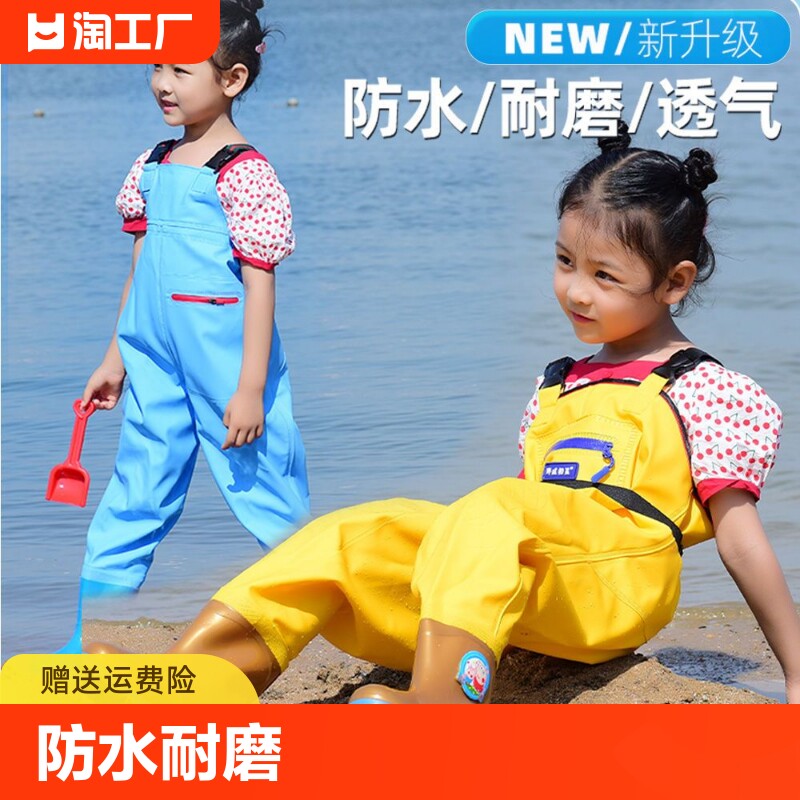 Водяные брюки Детские дождевые брюки и дождевая обувь интегрированная игра с водой, соединяющей рыбаки, детский сад, одежда из сандотера, поймала рыбу и улавливает морское водонепроницаемость