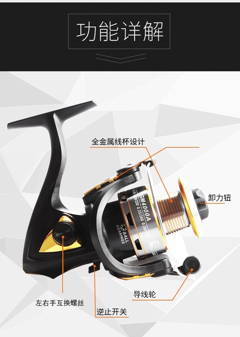 Нажмите на складной ручку, которая удобна для складывания! ◆ Многоорезоустенчивое механизм сопротивления блоков.◆ Сбалансированная конструкция корпуса проволочного колеса без вибрации.◆ с плоским результатом обмотки и плавным броском.◆ Rock Arm может быть взаимозаменяемой влево и вправо.◆ Существует кнопка тормоза тикания.