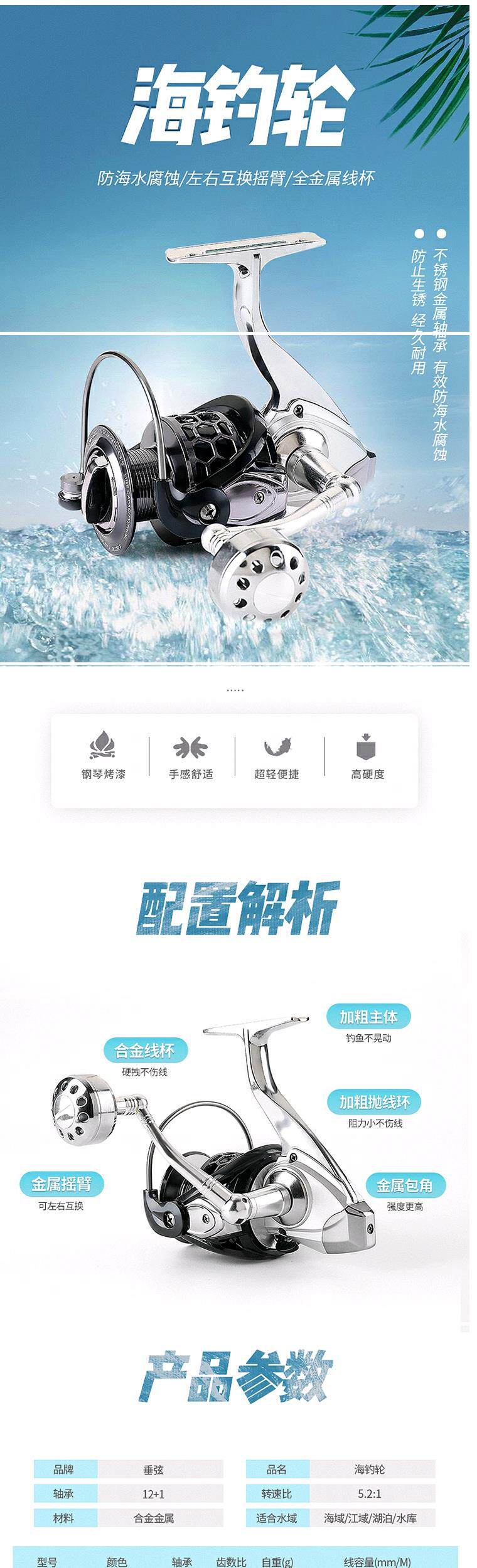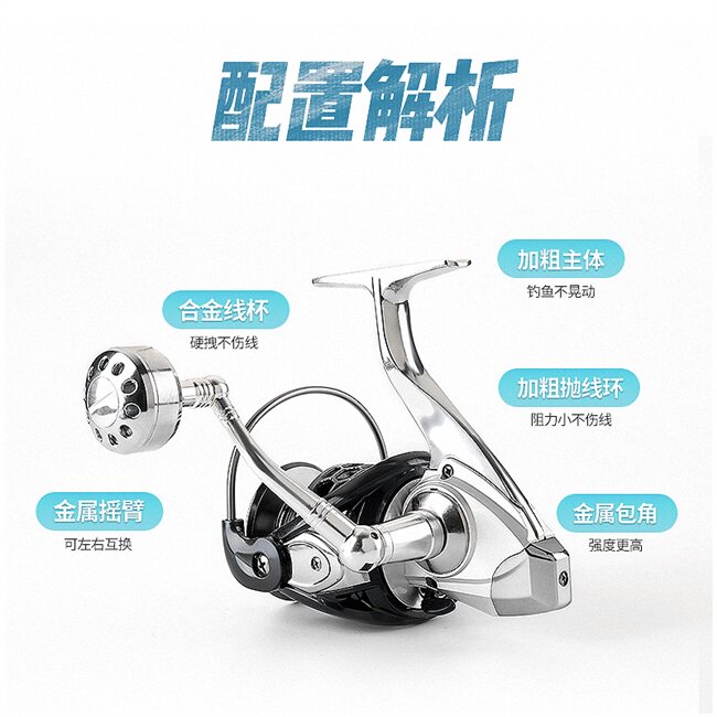 - Рыболовная катушка с металлическим корпусом (12+1 вал, устойчива к морской воде)