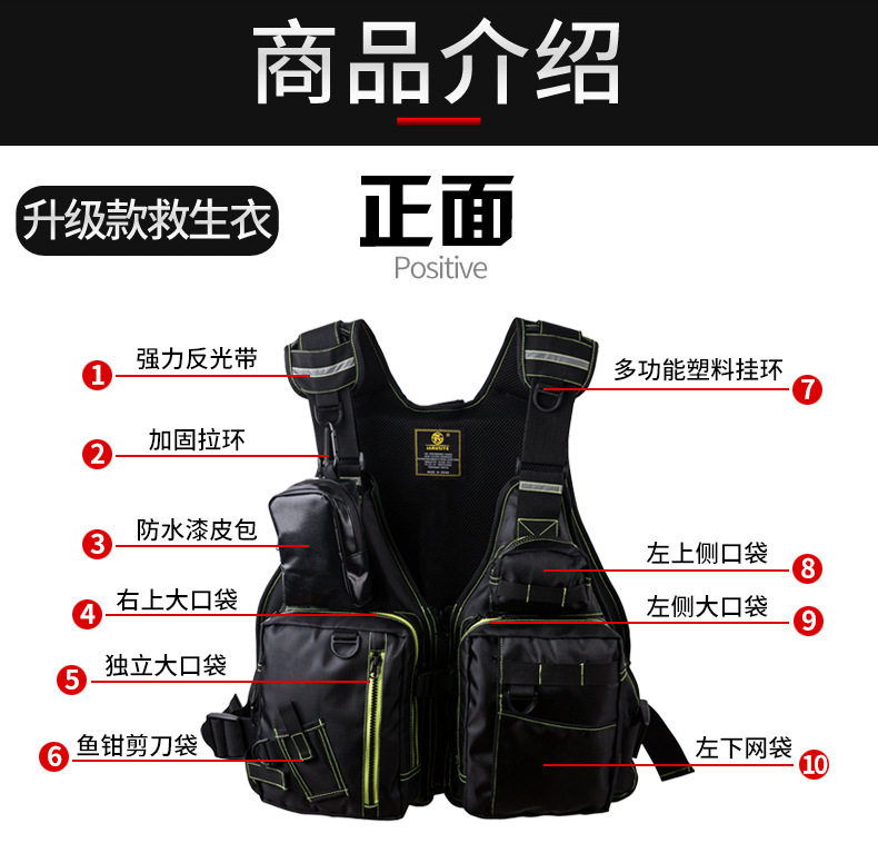 Водонепроницаемый спасательный жилет для рыбалки для взрослых, ткань оксфорд