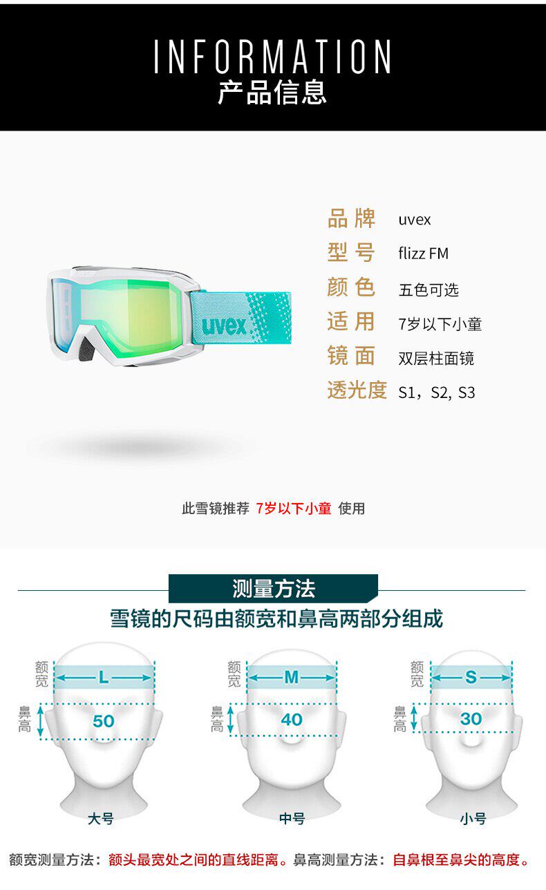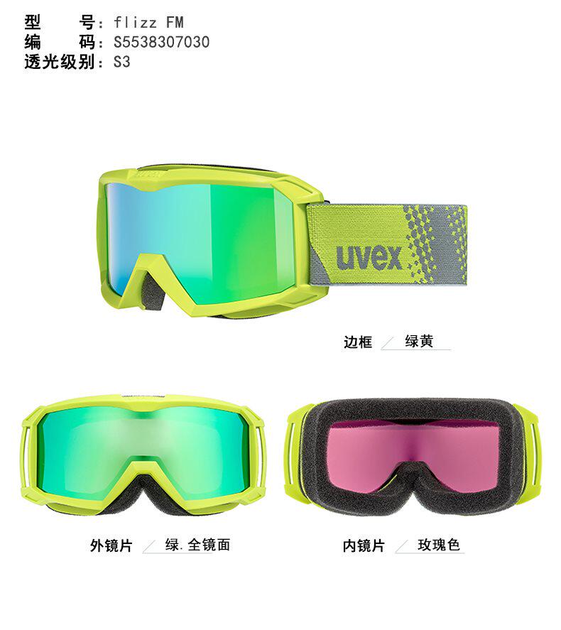 UVEX FLIZZ FM Детское лыжное зеркало Мужчины и женские бокалы с ветряными лыжниками Wind