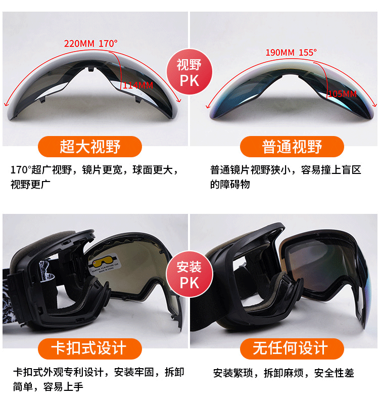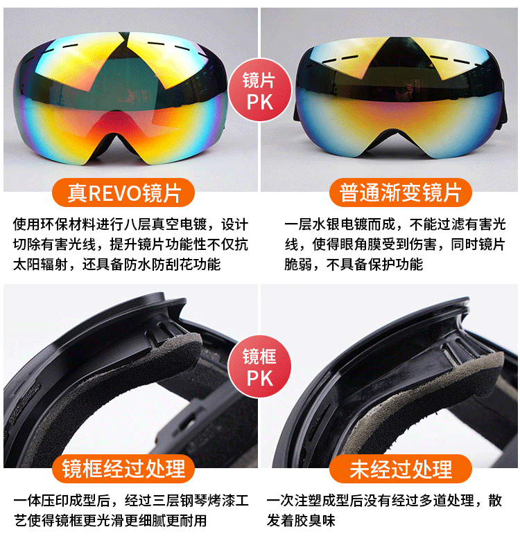 - H108 для взрослых лыжных зеркало черная рама-реальная красная пленка