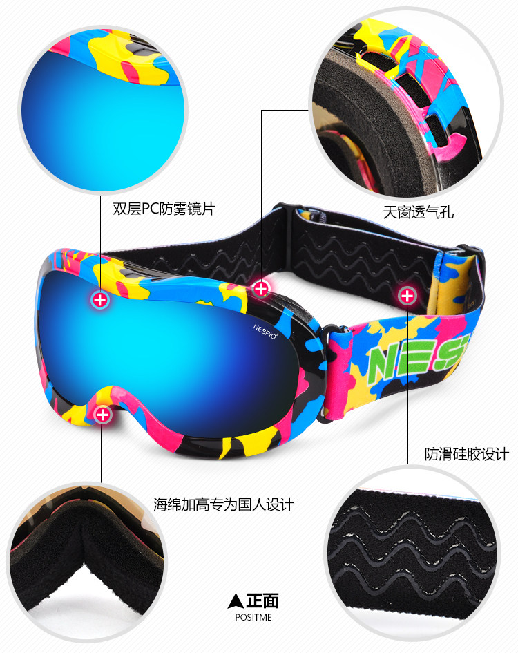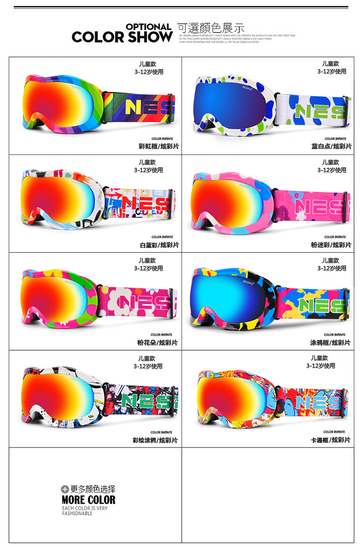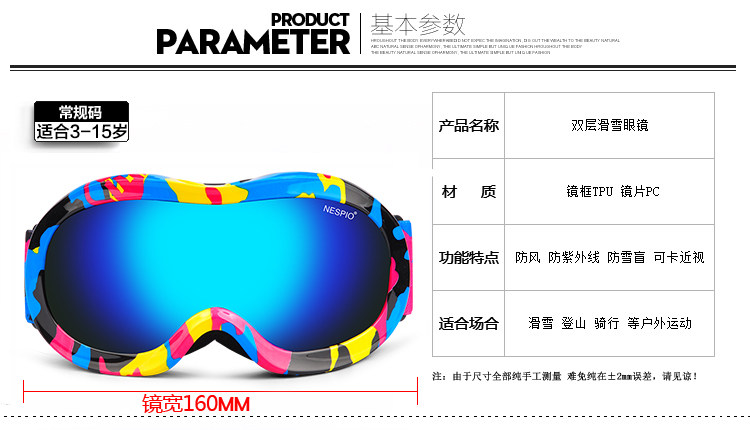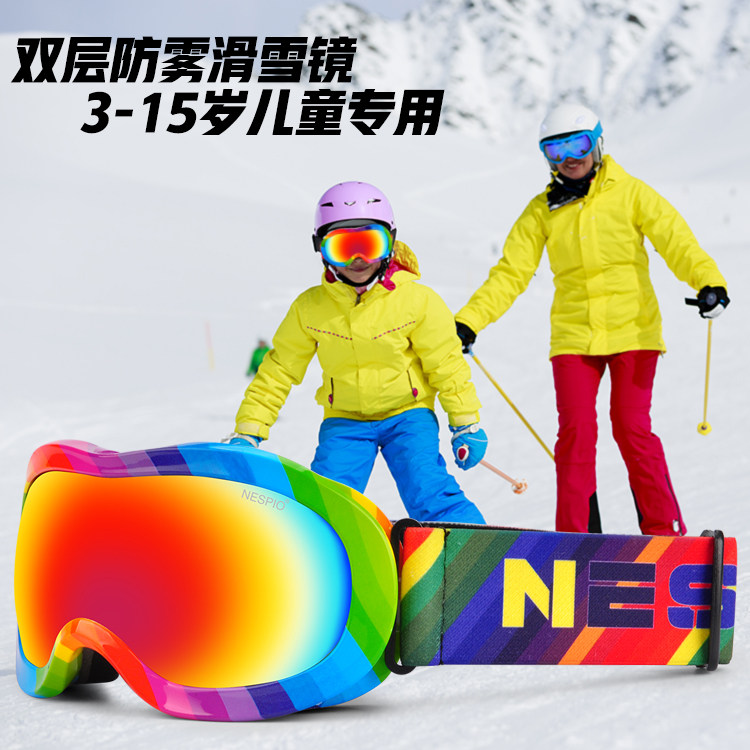 [单双板滑雪REVO镜片儿童3-15岁款双层防雾防雪盲可卡近视眼滑雪镜]