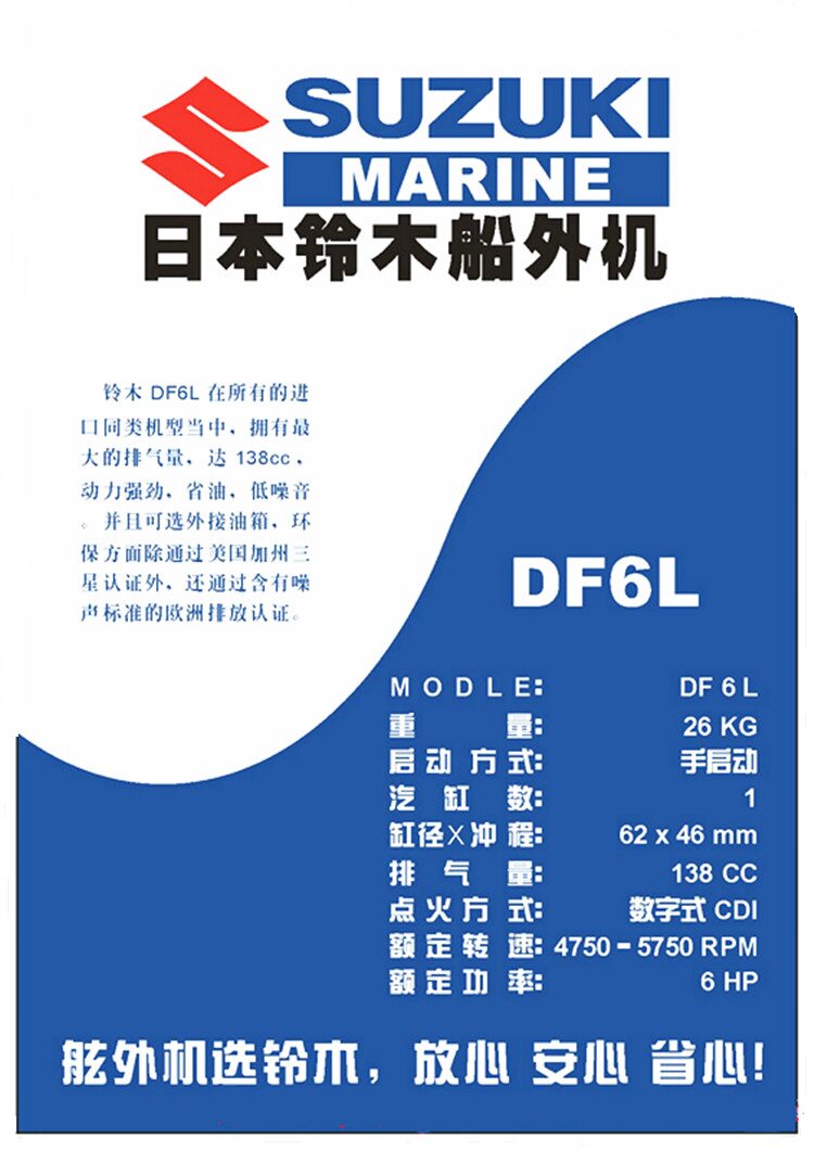 [Suzuki铃木4冲6马力船外机马达舷外船挂机船用推进器橡皮艇冲锋舟]