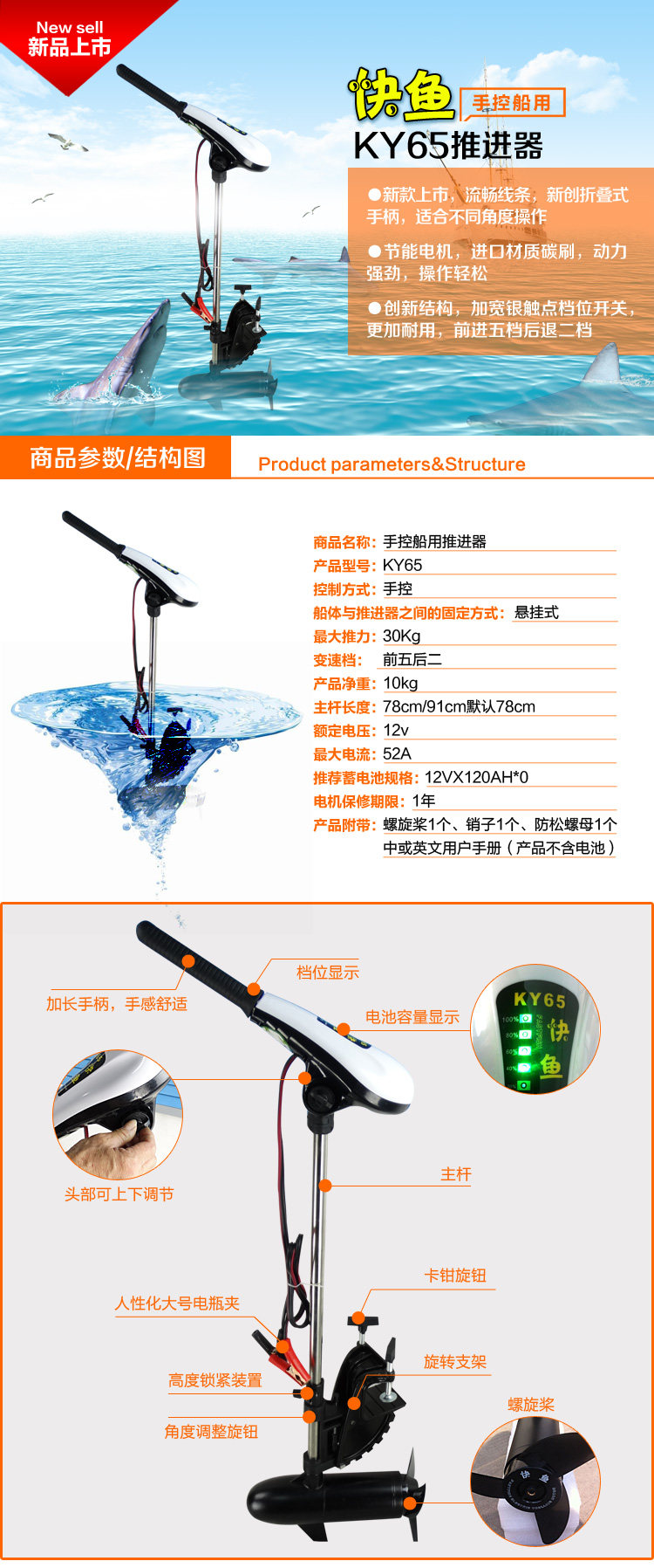 | Цвет: | Электрический подруливающий двигатель Kuaiyu KY65, Аксессуары: пропеллер, Аксессуары: переключатель регулировки скорости |