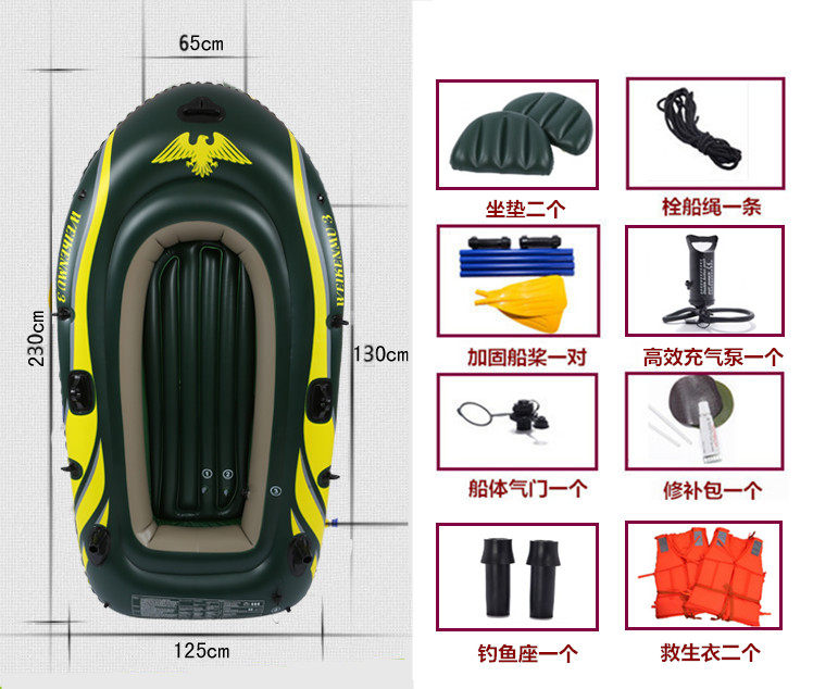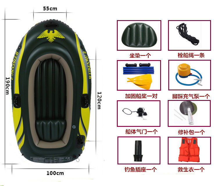 Двухместная резиновая лодка, трехместная резиновая лодка, утолщенная рыбацкая лодка, двухместная резиновая лодка, гребная лодка, надувная лодка повышенной толщины, рыбацкая лодка