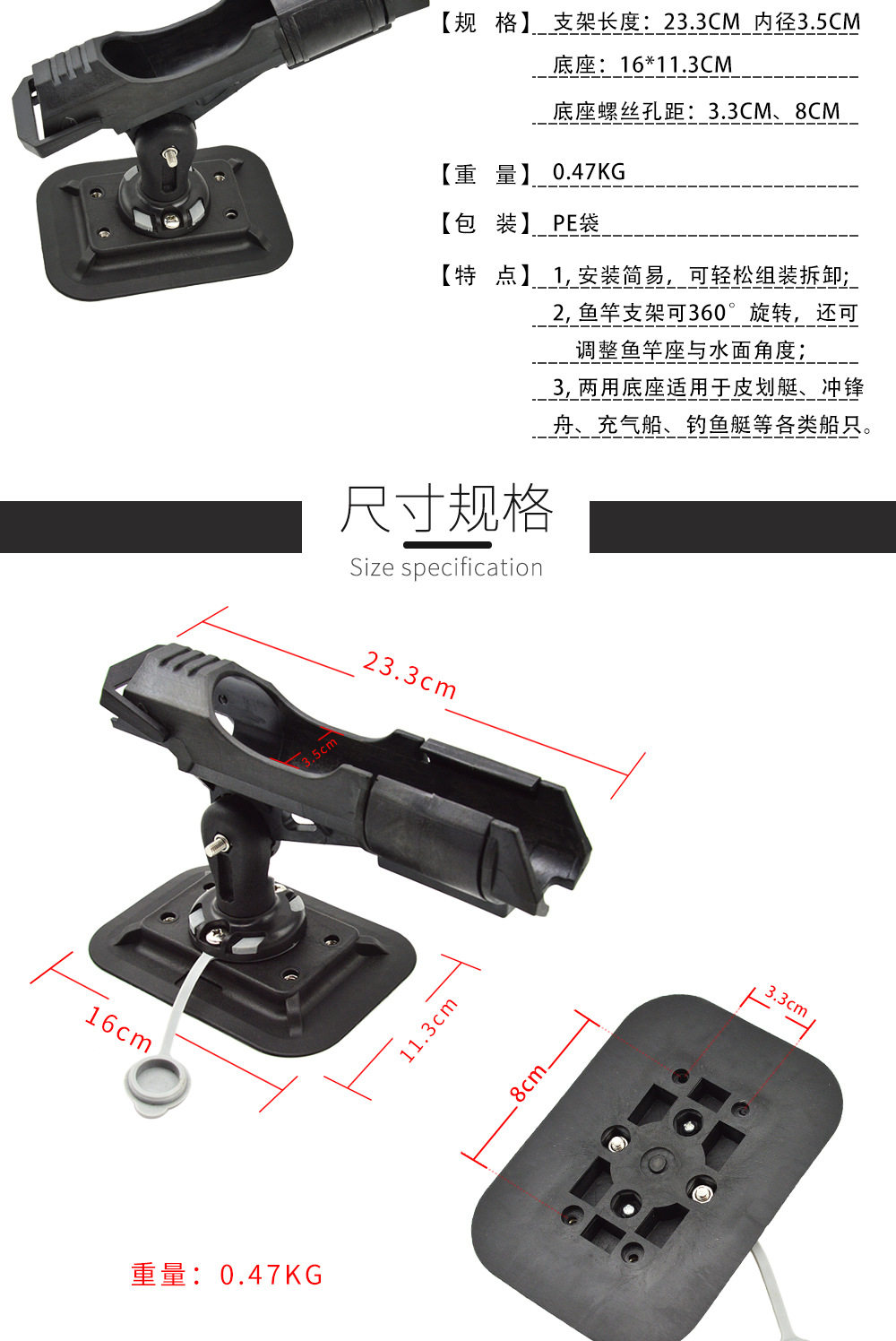 Новый продукт лодка надувной лодочной лодочный стержень с двойным рыболовным стержнем может регулировать вращающийся рыбацкий стент.
