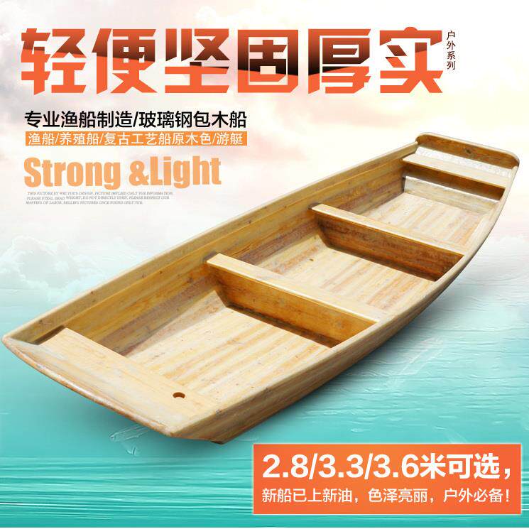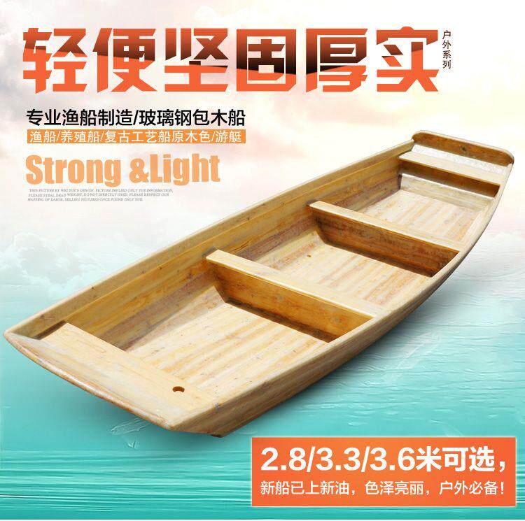 Деревянная лодка, облицованная стекловолокном, рыбацкая лодка, устойчивая к старению, старинная деревянная лодка, каноэ, утолщенная рыбацкая лодка, фабрика из стекловолокна