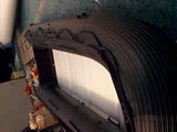 Нанесите слой и подождите пять минут.После применения трех слоев, через десяти до пятнадцати минут, круглый лист застрял на повреждении корабля.Разогрейте круглый лист феном, чтобы смягчить клей.Сверните мяч с жесткой круглой палкой.