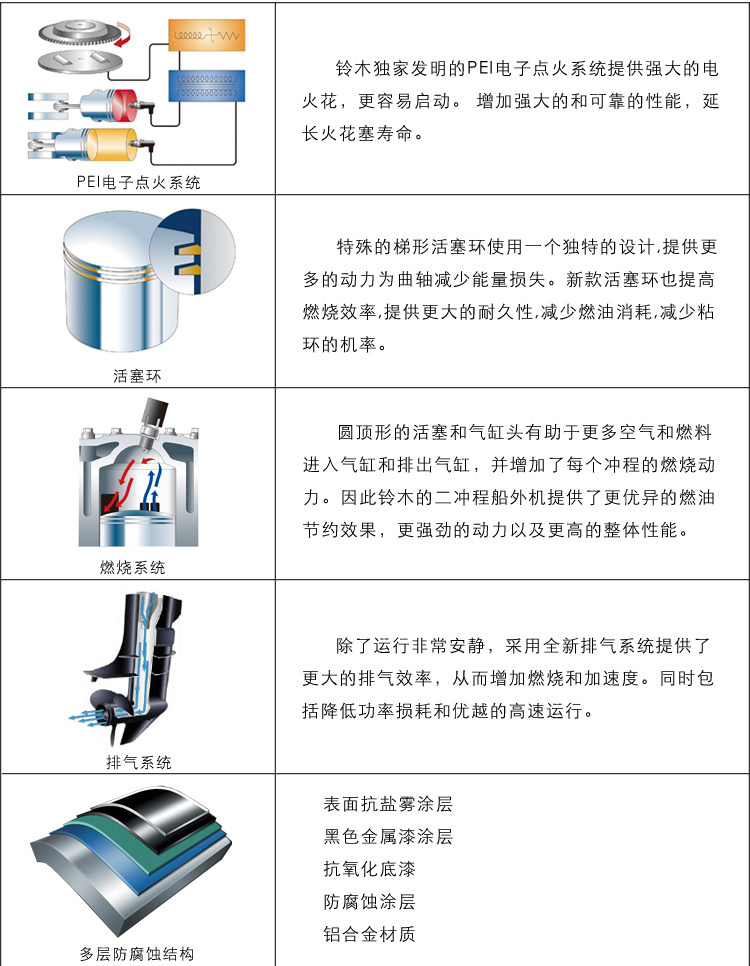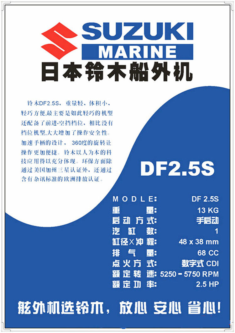 Двигатель с четырьмя ударами, произведенный Suzuki, не только работает чистым и экономичным, но и проходит строгое стандартное тест операции по очистке в мире.Каждый судзуки Четвертый корабль Чонгье принял требования выбросов выхлопных газов в 2006EPA, установленных Агентством по охране окружающей среды США, и получило минимальное сертификацию уровня выбросов Калифорнийской комиссии по воздушным ресурсам (CARB).За пределами судов нашей компании также получил сертификацию European Emision Standard Emision Standard.