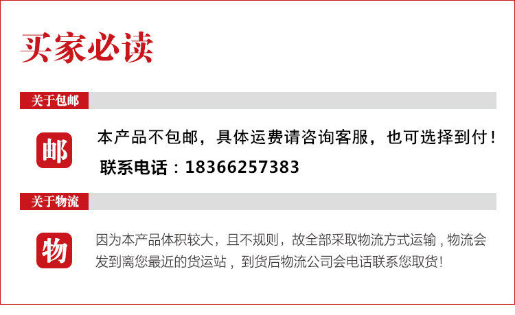 Груб стекловолокно имеет большие размеры и не подходит для экспресс -доставки и обычно отправляется в логистику. Плата за доставку подтверждается после консультации с продавцом.Затраты на грузовые перевозки различны в разных регионах, разных товарах и различных логистических компаниях.Продавец не может знать конкретную сумму платы заранее.Покупателю безответственно отметить сумму грузовой суммы.Следовательно, 1 цент используется, чтобы указать, что цена товара не включает в себя груз. Перевозь необходимо решить в зависимости от местоположения покупателя и логистической компании.Пожалуйста, проконсультируйтесь с магазином для конкретного груза.Спасибо за понимание.