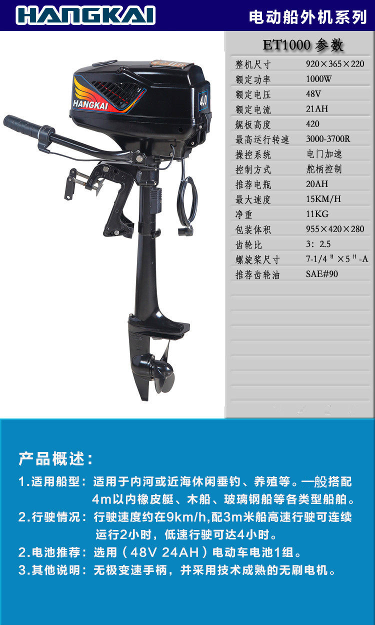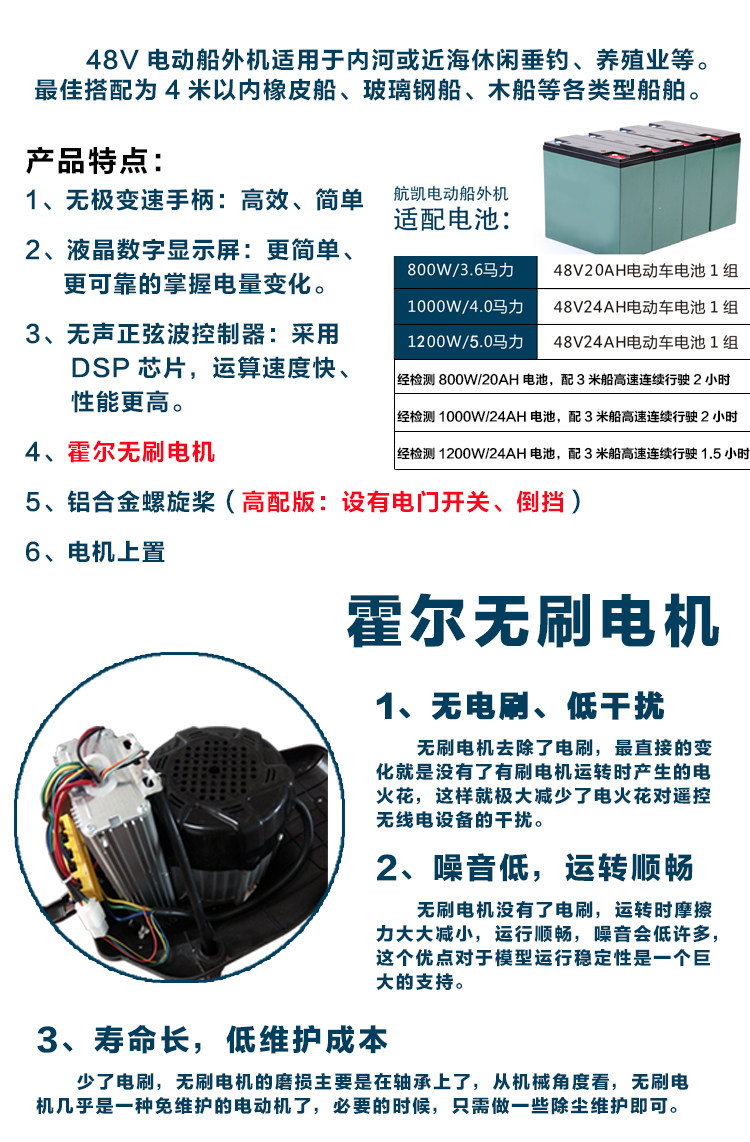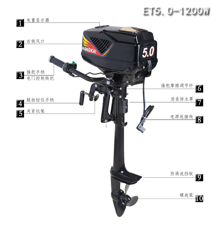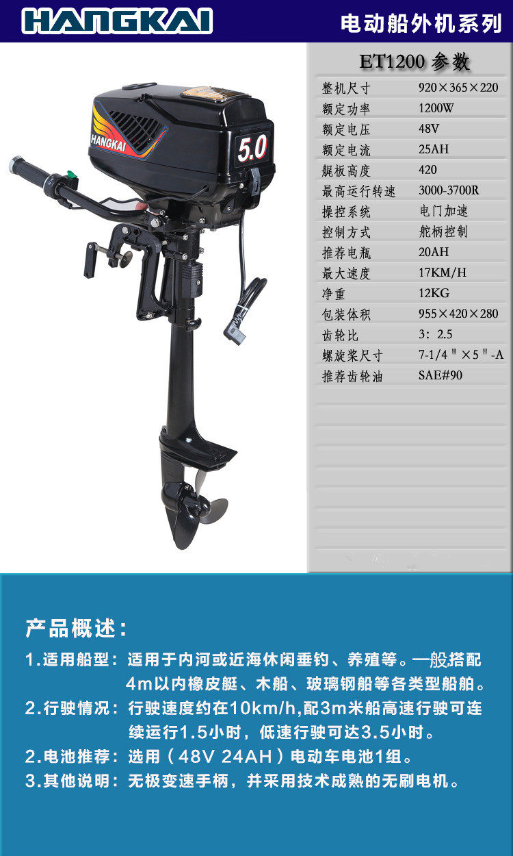 Hangkai Direct Marketing Ship Vishing Electric 48V5.0 High Electrical Electrice 1200 -ватт -толкатель без вставки лошадиных сил
