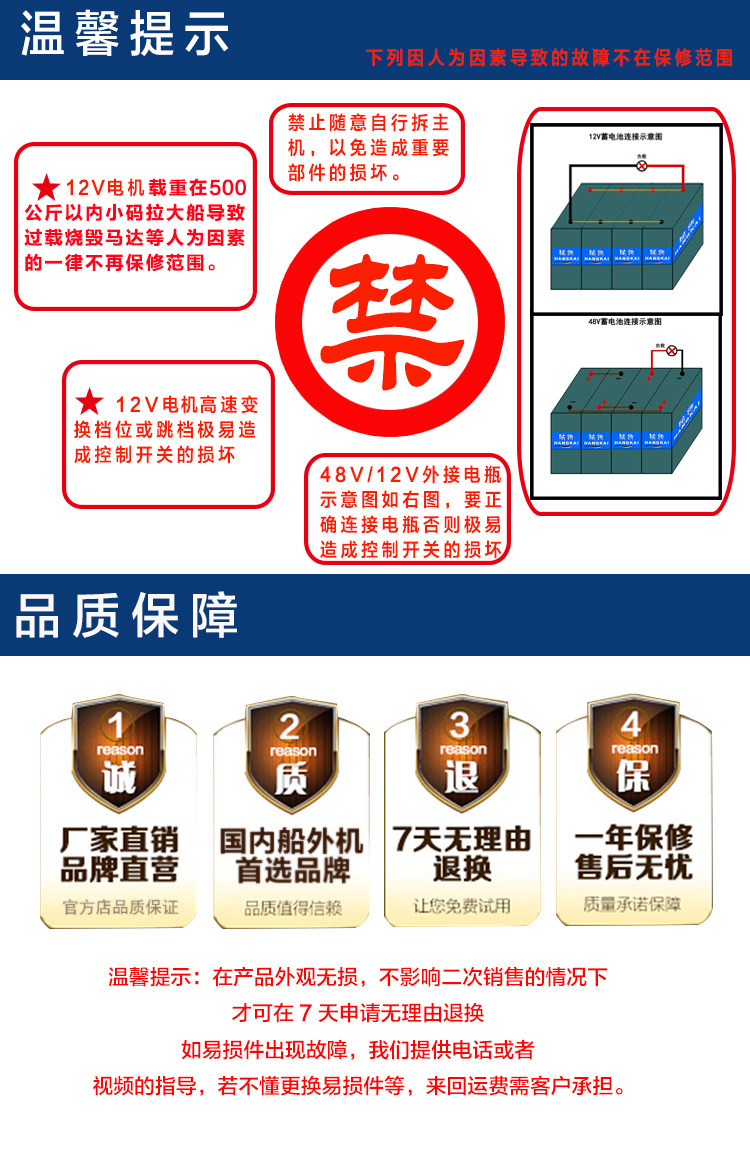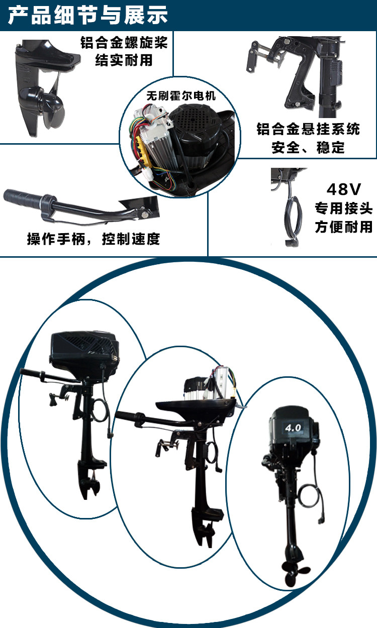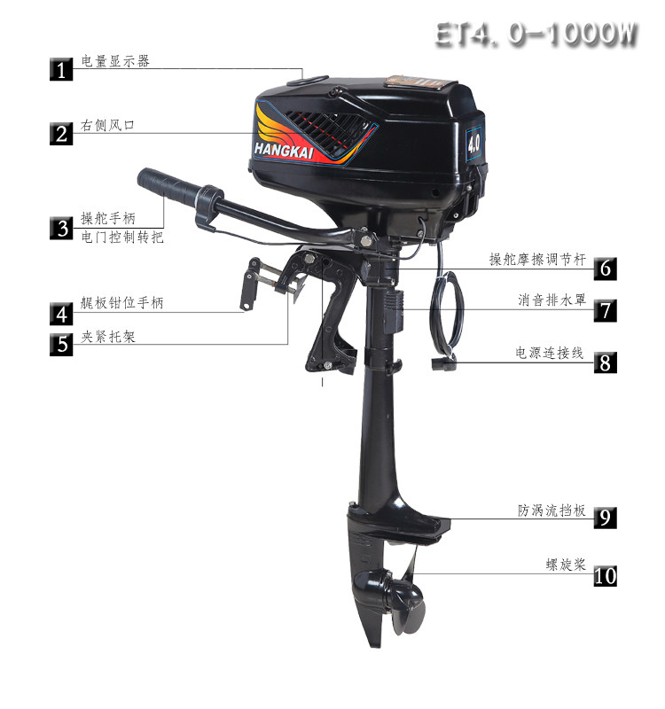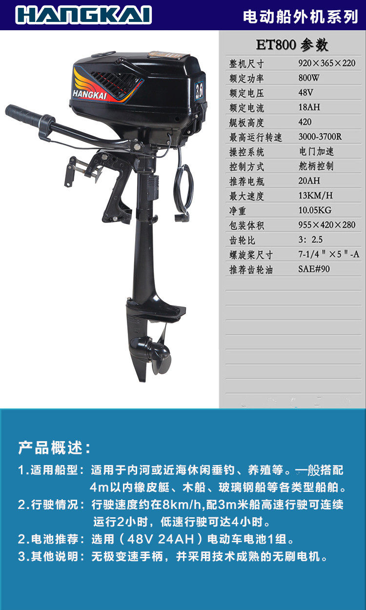 Hangkai Direct Marketing Ship Vishing Electric 48V5.0 High Electrical Electrice 1200 -ватт -толкатель без вставки лошадиных сил