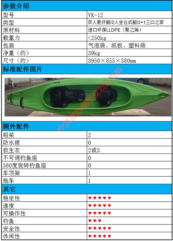 Продавец:宁波沸鼎模塑皮划艇直销店