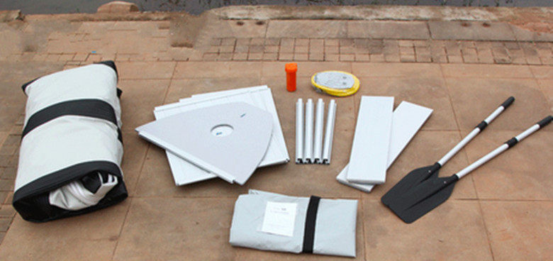 Стандартные аксессуары: одна пара алюминиевого весла, два куска платы, один ремонтный цилиндр, портативный пакетОдин, педальный воздушный насос один