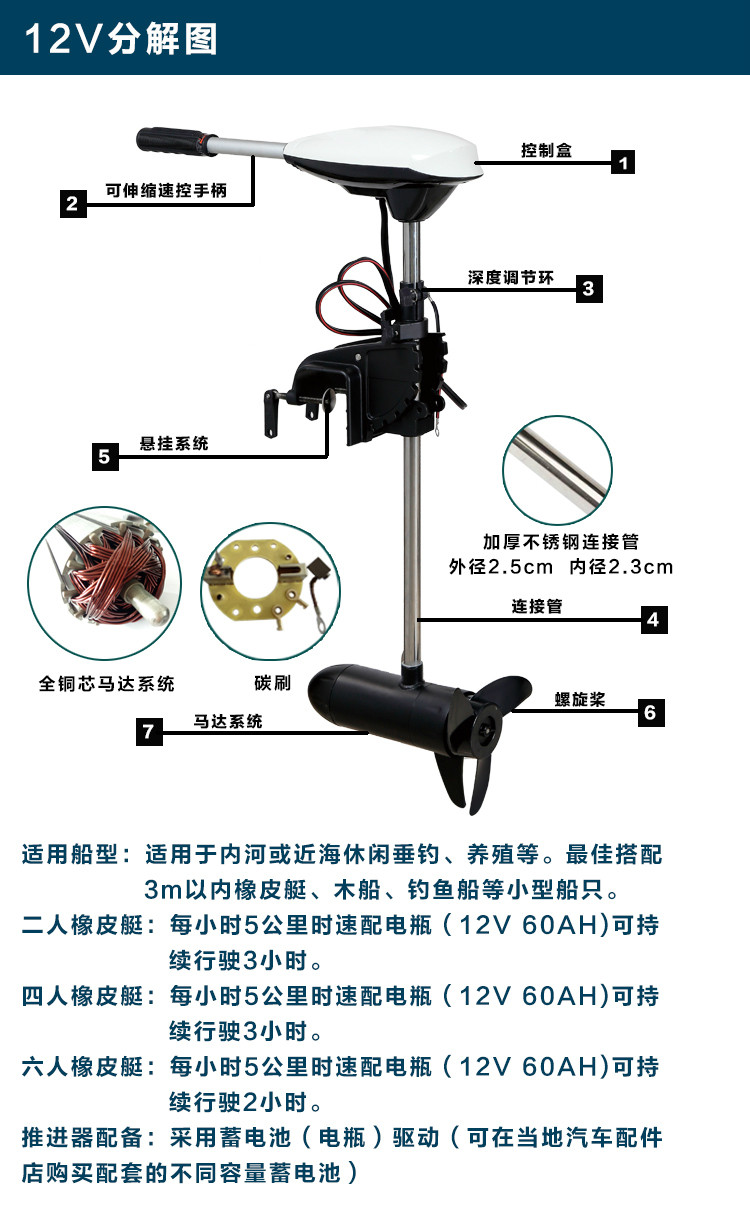 Hangkai 12 В электрический пропеллер подвесной мотор пропеллер каяк надувная лодка двигатель пропеллер