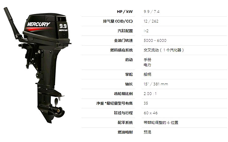 Возможности Mercury Ship Erchongs и Четыре Чоин Тейт 3.3-30 Himeli Boat Holding Port Port Mideline Basshine Engine Original