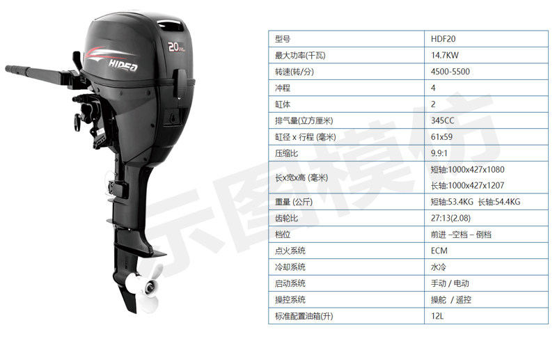 - Четырехтактная 20-сильная модель с задним масляным карбюратором.