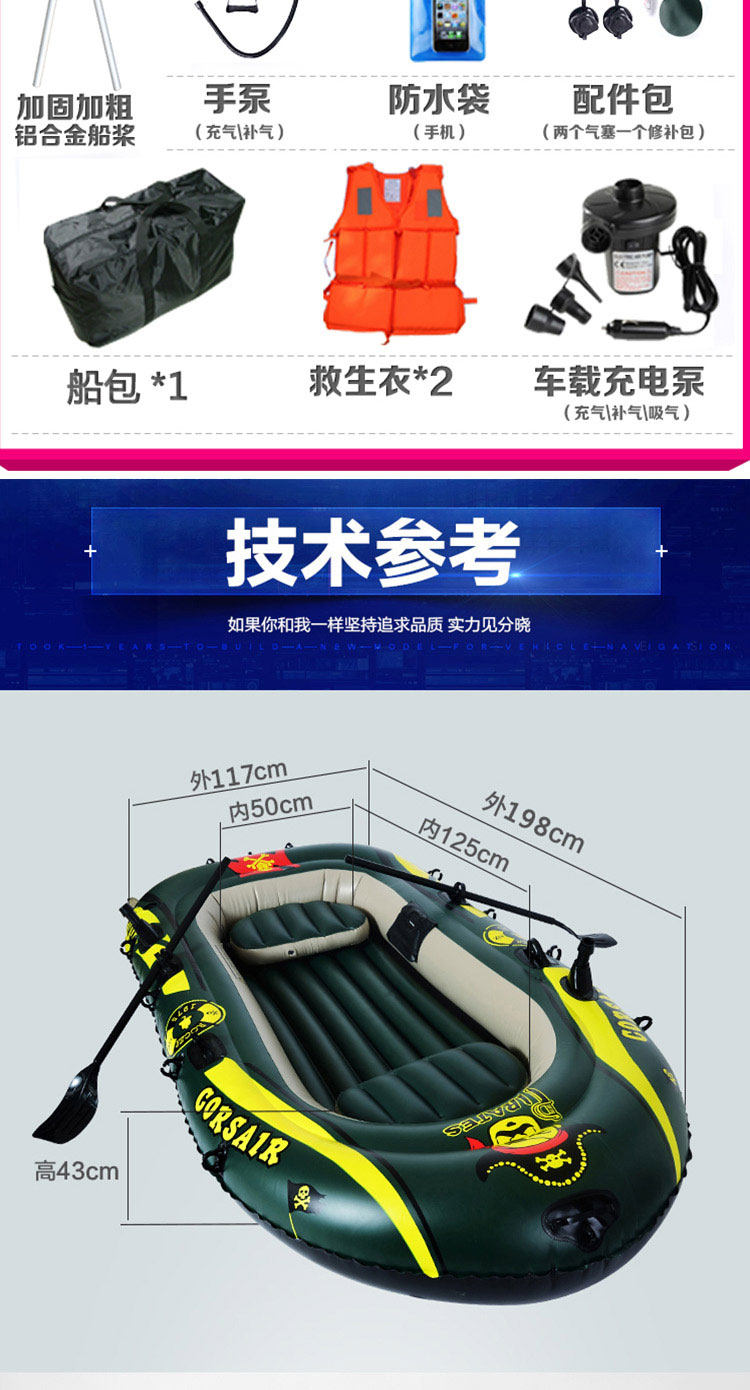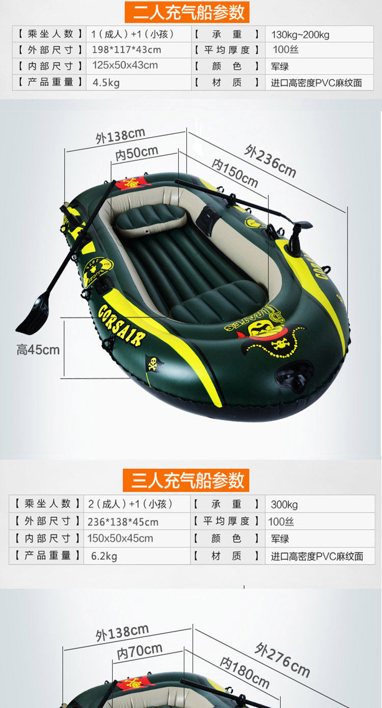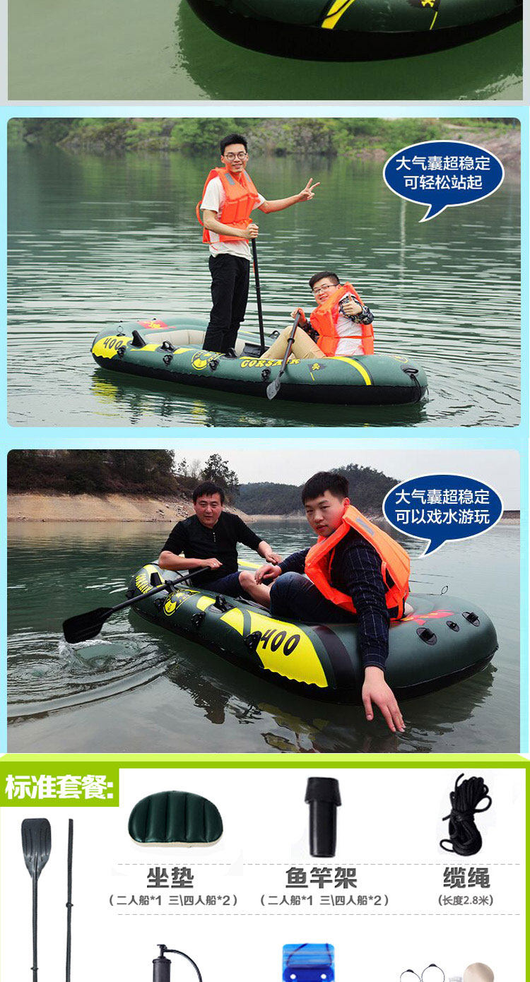 Ластик для рыбалки, надувной складной кушон для двоих, портативная лодка, увеличенная толщина