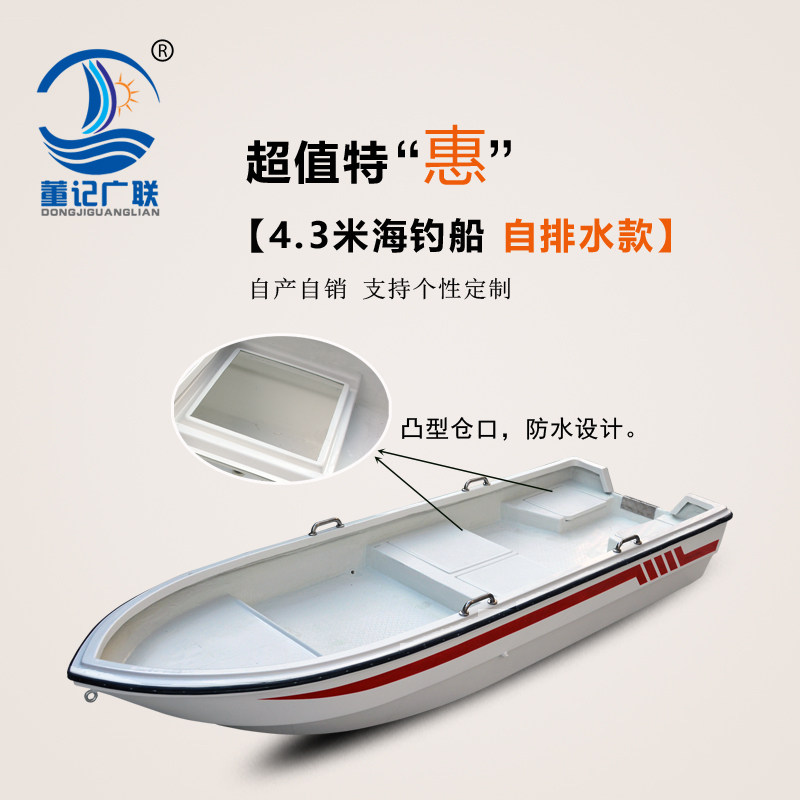 Guanglian Shipbuilding 4.3 Self -Drainagment FRP Списовая лодка рыбацкая лодка яхта рыбацкая рыбацкая лодка с живой водой рыба
