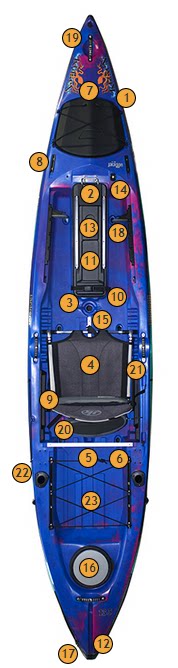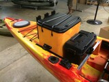[尾部大号带弹力绳的储物箱井,可放置并固定装备,小冰箱或工具箱。Coosa HD 还配有独一无二的可拆卸弹力绳系统。储物箱井两侧都有YakAttack装备滑轨,上面的大头螺丝可以让你任意设置你的储物箱井。]