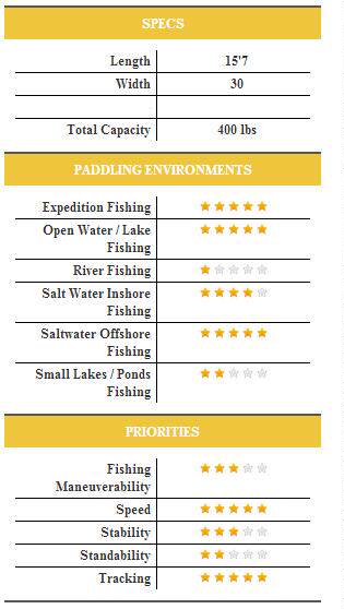 Kraken 15.5[这款艇是为世界上一些最具挑战性的环境设计的,面对是那些离岸或者大湖的钓鱼者。这款艇标志着皮划艇钓鱼传奇人物吉姆.萨蒙斯和托尼.李领导的杰克逊皮划艇的设计团队的首次合作设计。最终结果是一条能满足那些冲击开放水域,那些寻求速度,舒适性,完美水线和大水性能的人的要求的艇。这是一款划艇人的钓鱼艇!它设计就是用来穿透卷皮浪,处理狂乱的离岸流、大浪、沙滩登陆和满足那些想要终极性能来长距离划行去钓大鱼的人的要求。]