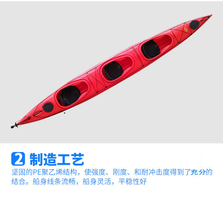 QSSIT56001 Трехперансная морская лодка с тремя личностями каяк -каяк -каноэ на каноэ Пластиковая жесткая лодка Три человека перегружены стабильными стабильными