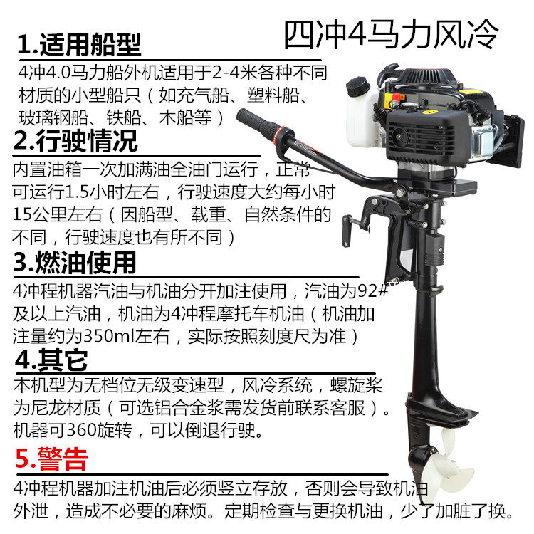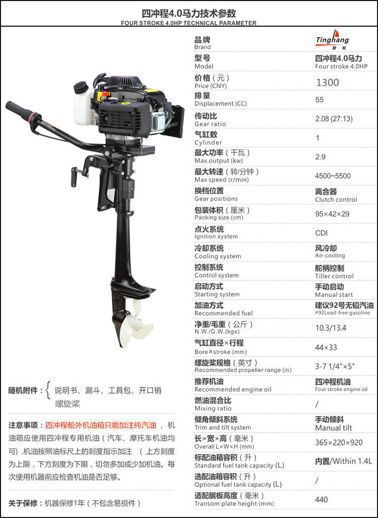 Tinghang 4 Chong 4 лошадиных сил с воздушным контурным толкателем толкает лодочную лодочную лодку рыбацкую лодку Наружный хвост висят трубку