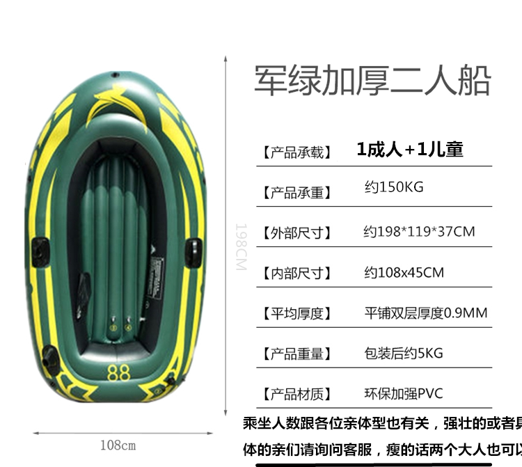 Утолщенная резиновая лодка, надувная рыбацкая лодка, одноместная покраска кожи, гребная лодка, двухместная износостойкая дрейфующая лодка, надувная лодка, электрическая деревянная лодка.