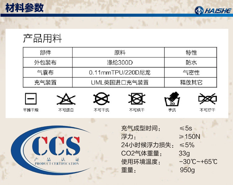 救生衣(圈)在水温10摄氏度以下,自动充气的时间会有所增长;