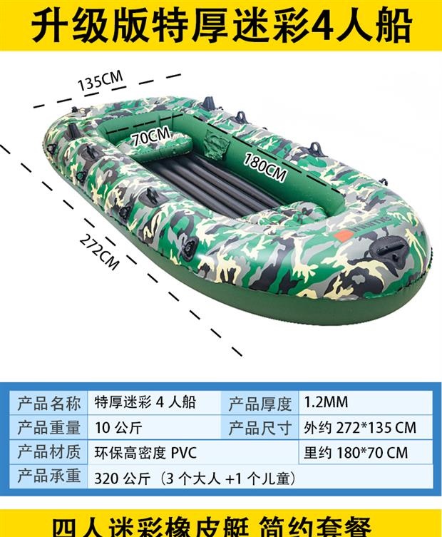 Plug -of -Pinak Boat Double -Ering Air Cushion Портативная рыбацкая кожа очень портативна, а толстый каяк -слон Четыре человека надувные лодки