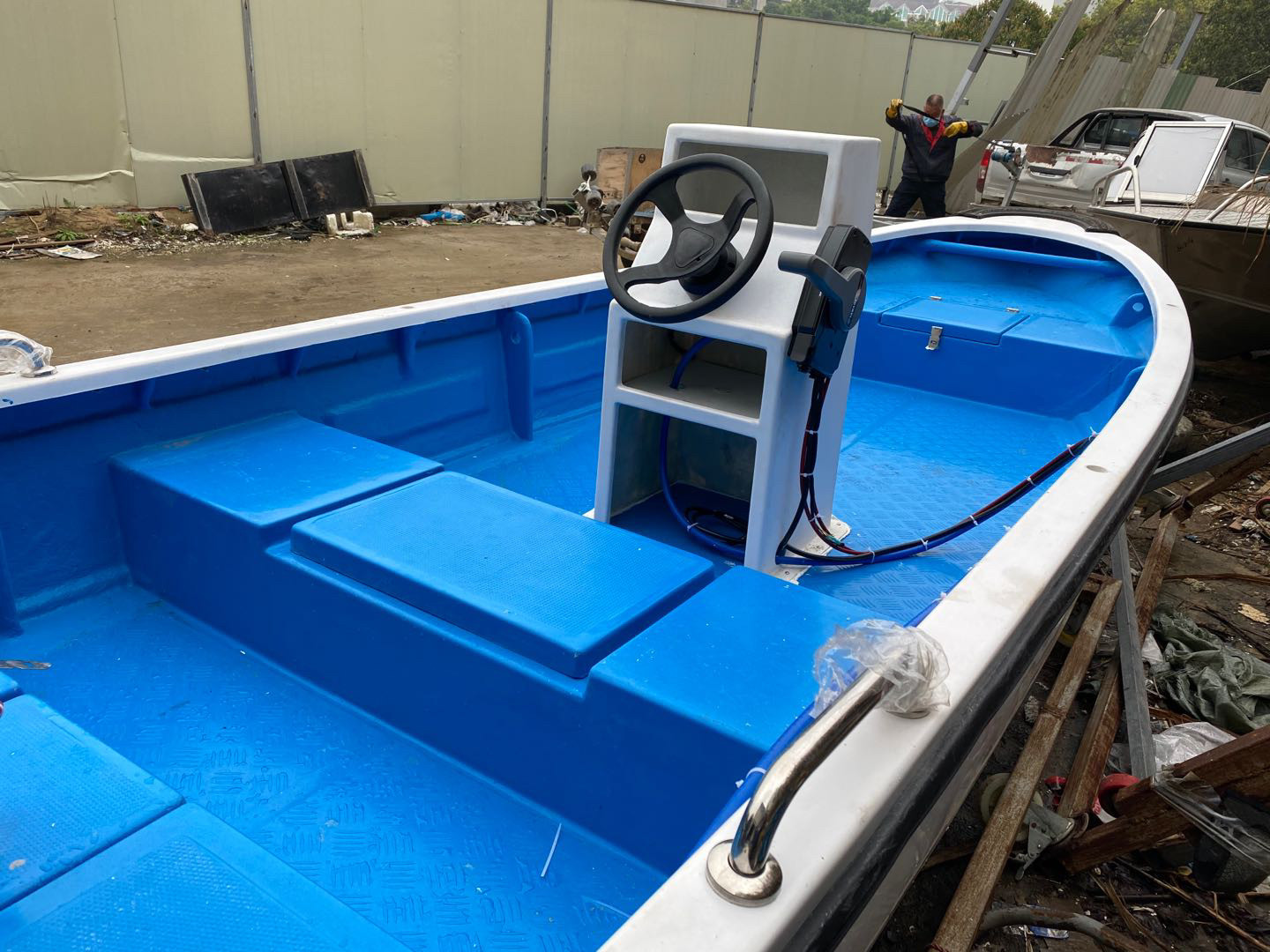 Пленка, усиленная чертовски рыбацкой лодкой, на море рыбацкие лодки перед использованием для управления крупным водительским зданием Taichung перед использованием