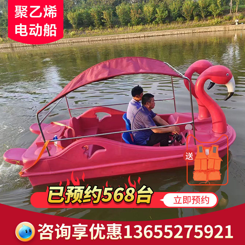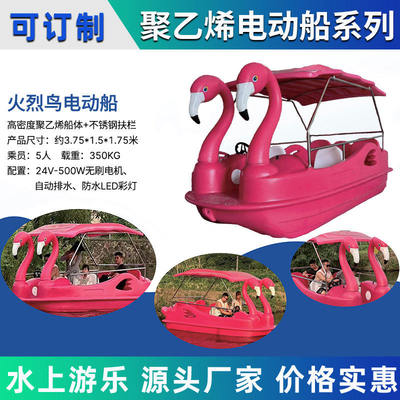 2024 новая светящаяся водная полиэтиленовая пластиковая лодка с изображением фламинго, мультяшная электрическая лодка, живописная развлекательная лодка для родителей и детей
