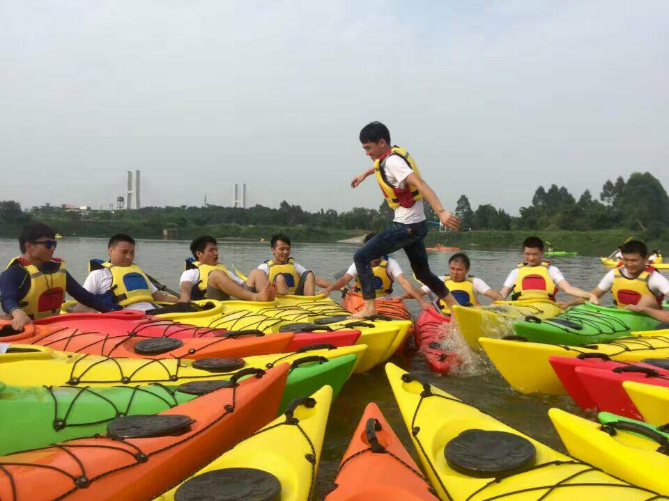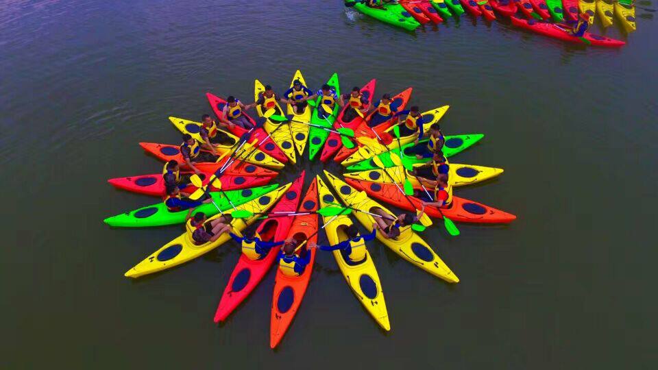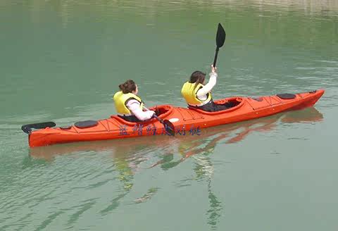 Выйдите из двойной морской лодки пластиковой каяки катания на капоте