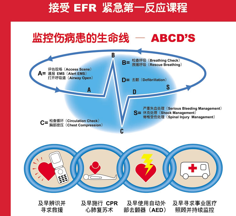EFRСрочная первая первая первичная скорая помощь (CPR)иEFRЭкстренная первая реакция вторичная скорая помощь (первая помощь) два курса, объединенные как набор основных курсов, подходящих для непрофессионалов, чтобы изучать и применять.Мы будем на этих двух курсахCPRИнтегрируйте порядок чрезвычайных травм, которые легко запомнить с помощью чрезвычайных навыков, так что студенты, участвующие в курсе, могли дать травмированному человеку эффективные чрезвычайные травмы и спасение.