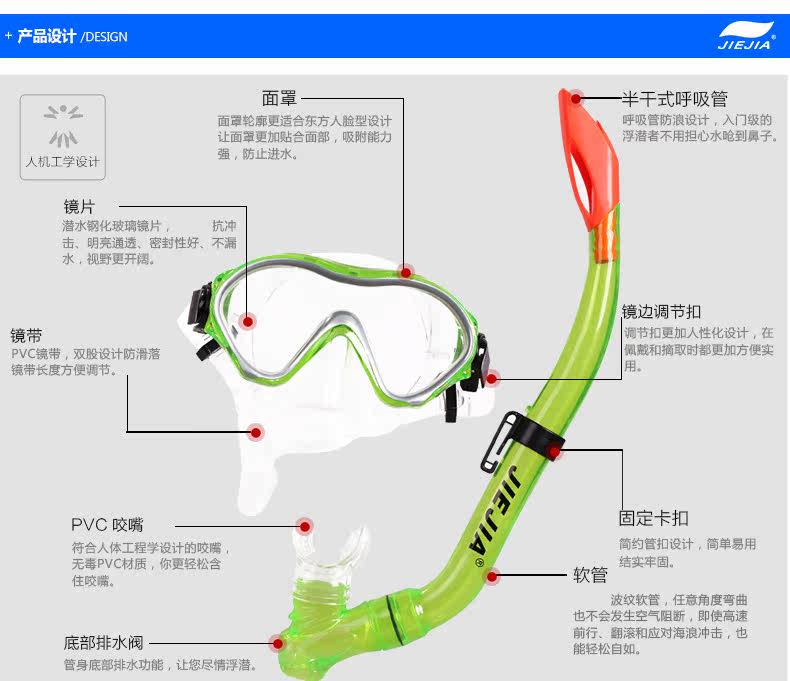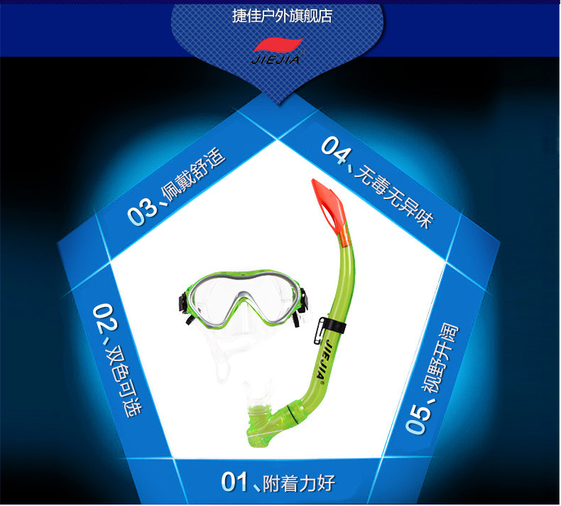 捷佳 Профессиональное детское снаряжение для плавания, водонепроницаемая дыхательная трубочка для снорклинга, дайвинг