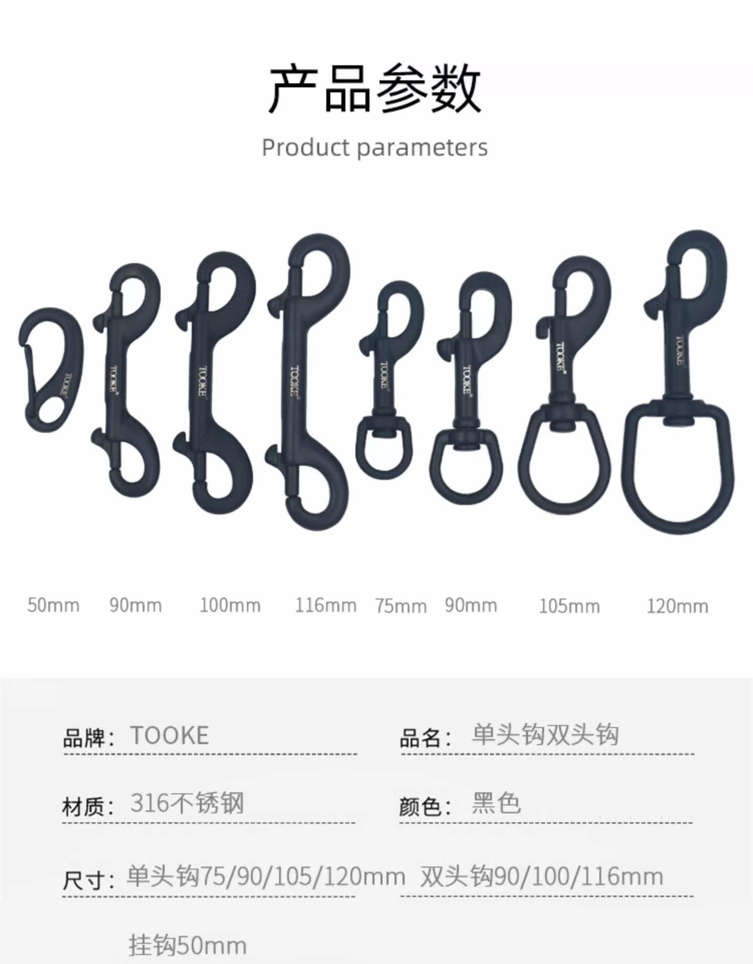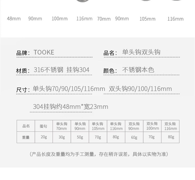 Dive1001 316 90 мм из нержавеющей стали одно крюк с двойным крючком Черный крючок яич