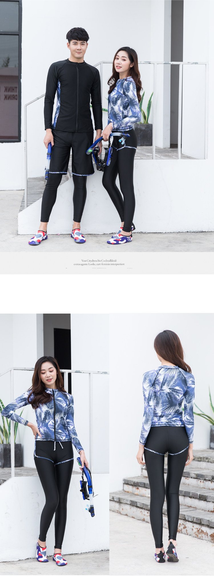 Лонгслив, купальник, штаны, раздельный комплект с молнией, для влюбленных, защита от солнца