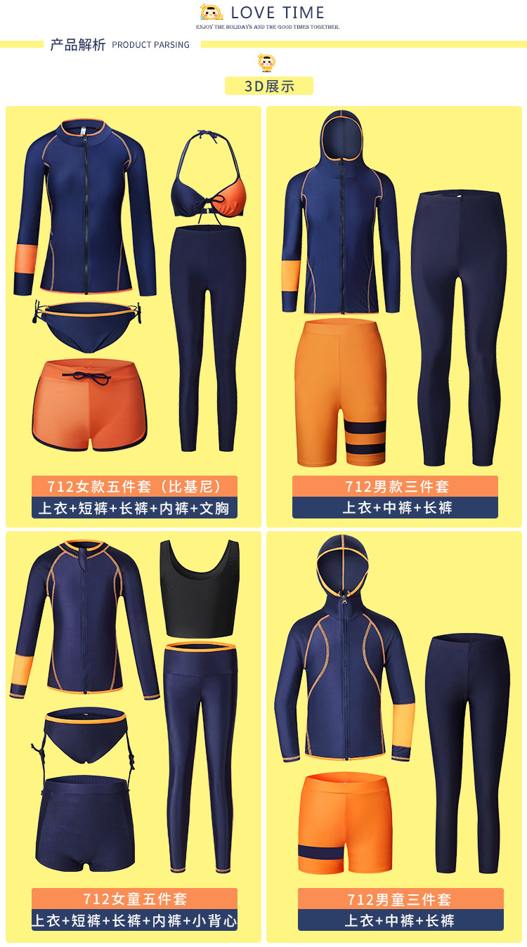 Комплект, купальник, штаны, быстросохнущий детский лонгслив подходит для мужчин и женщин, семейный стиль, для влюбленных, защита от солнца