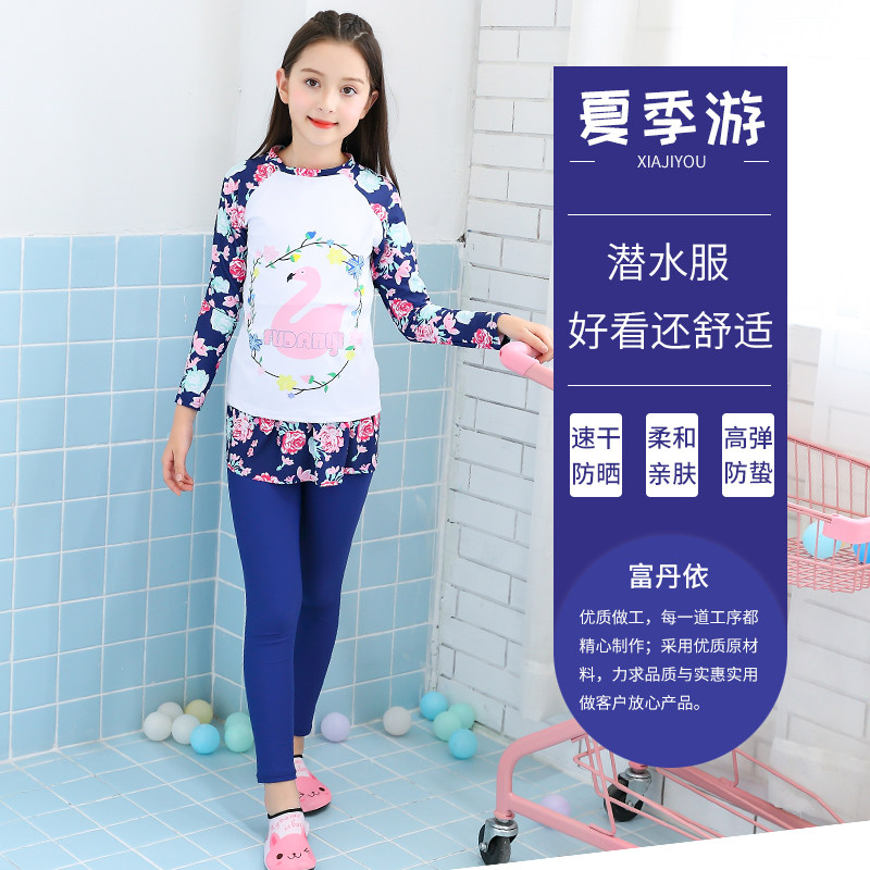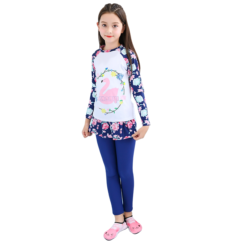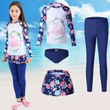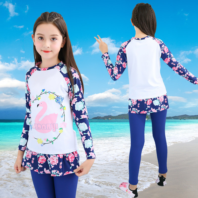 Детский раздельный комбинезон, штаны, лонгслив, купальник, защита от солнца, подходит для подростков
