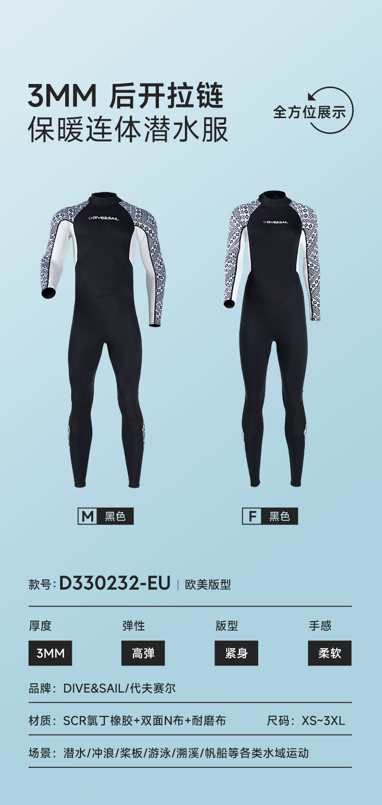 Удерживающий тепло водонепроницаемый купальник, 3mm, защита от солнца
