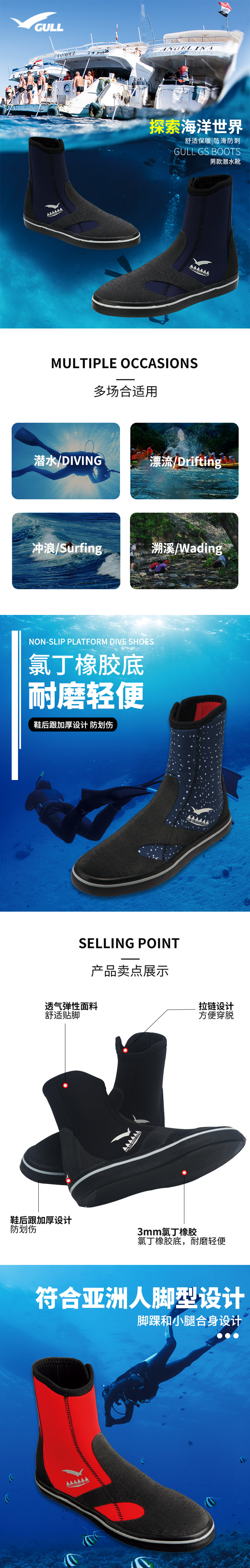 Чайки GS-Boots 3 мм High Top Diving Shoes Boots.